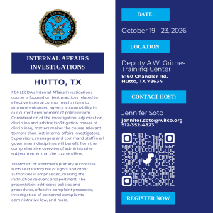 • FBI LEEDA - Conducting and Managing Internal Affairs Investigations (October 19-23, 2026)